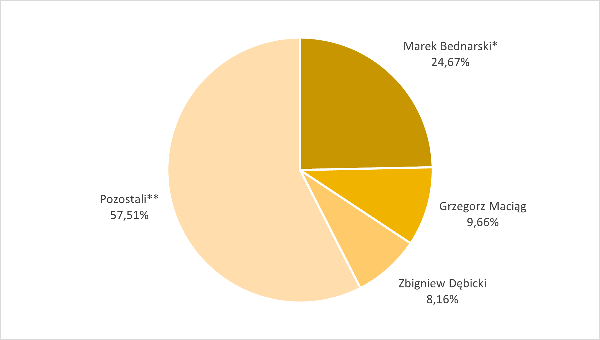 | Marek Bednarski * | 6 709 665 | 6 709 665 | 24,67 | 24,67 |